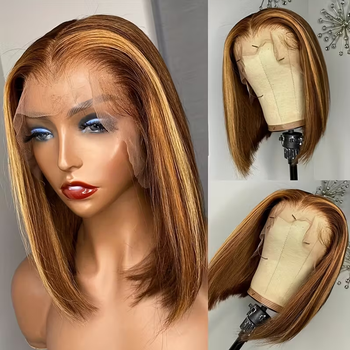 Großhandel Günstige 13x4 Lace Front Brasilia nische Haar Perücke 10 Zoll Kurze Bob Perücken für schwarze Frauen in 4/27 Transparente HD Lace 12A Grade
