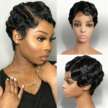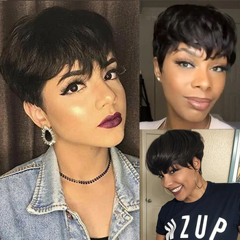 귀여운 내츄럴-앞머리가있는 픽시 컷 헤어 가발을위한 옹 브르 레드는 작은 모자 크기 레이어드 웨이브 가발